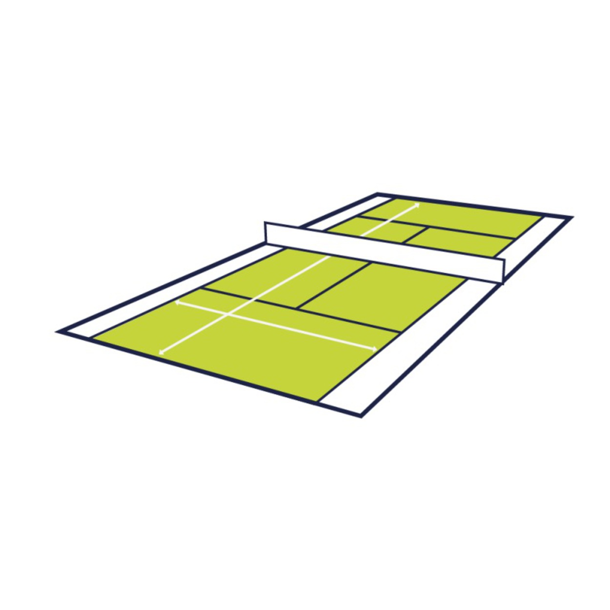 Großfeld: 23,77m x 8,23m | grüne Bälle (Stage 1): 25% druckreduziert | Schlägerlänge: 63-68 cm