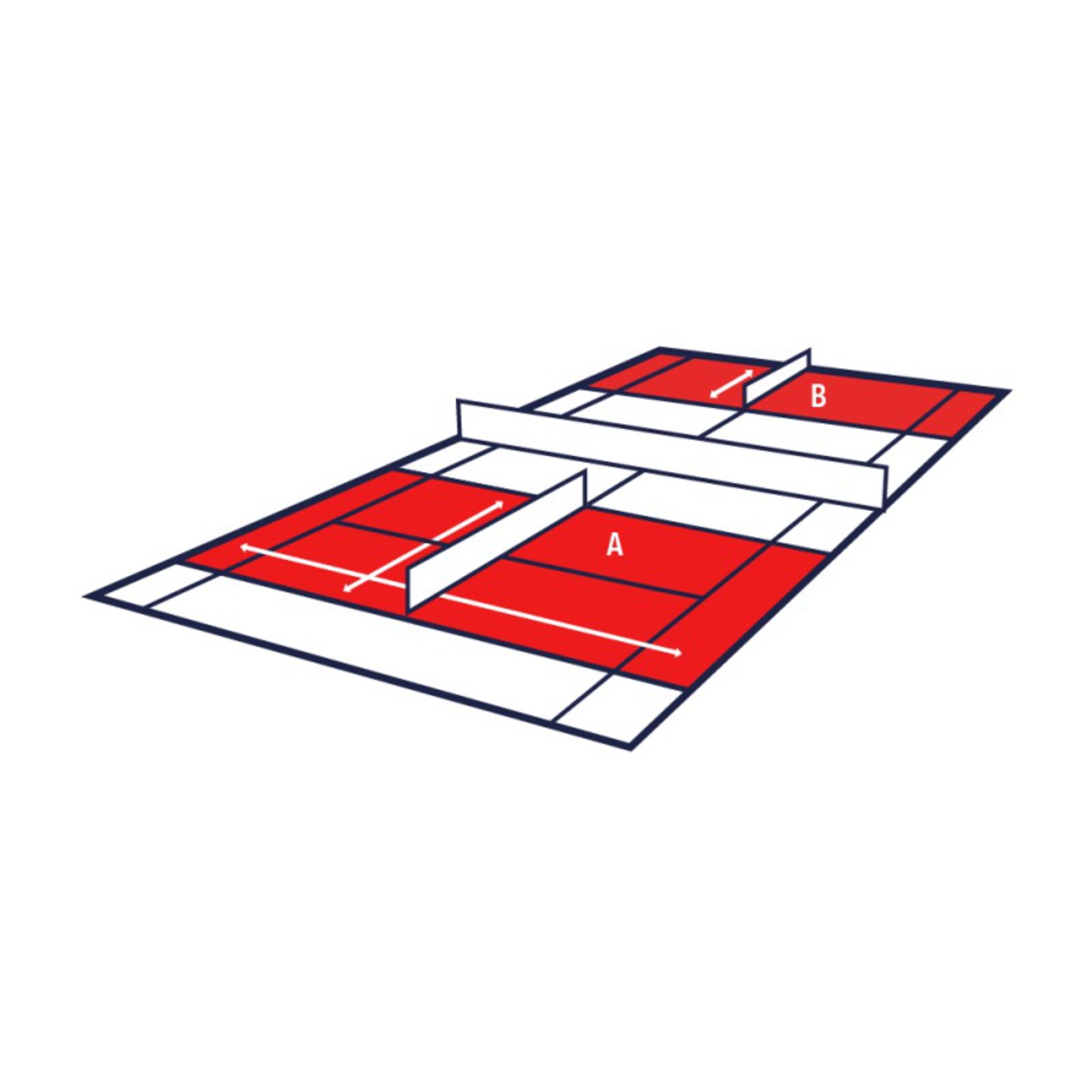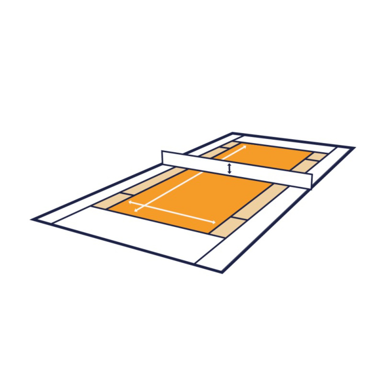 Midcourt: 18m x 6,40m | orangene Bälle (Stage 2): 50% druckreduziert | Schlägerlänge: 58-66 cm